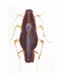 Adults are about 1/2″ long, brown with two dark streaks on the thorax. The female is darker in color with a broader, more rounded posterior. Both sexes have wings as long as their bodies.