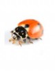 About 1/4″ in length. Commonly yellow, orange or red with small black spots and black legs and head. Oval body.