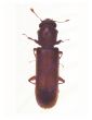 Second only to termites in destroying wood. They leave small, round holes in wooden articles along with a residue of fine, powder-like dust. The various species of these beetles range from 1/12″ to 1/3″ in length, and from reddish-brown to black in color. The basal segment of the abdomen is as long as the second and third combined. The body is flattened and the head is visible from above.